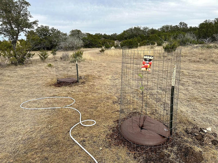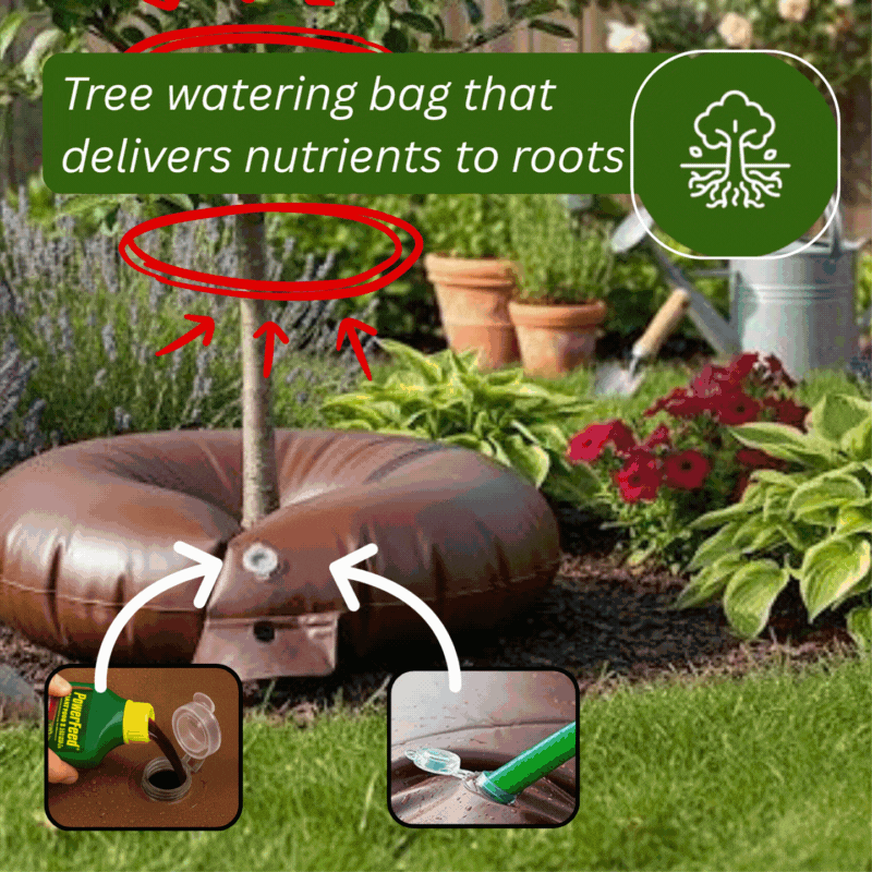 Two tough gloves for pruning and planting, plus a watering bag to keep trees hydrated without daily effort.